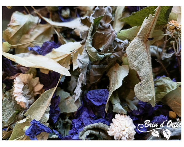 Guimauve*, tilleul*, verveine*, mélisse*, camomille romaine*, mauve*, reine des prés*